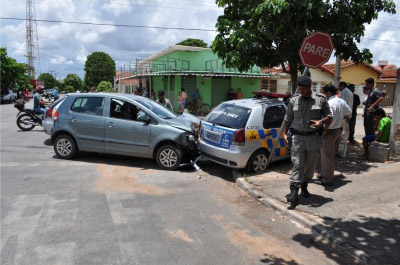 Aposentado invade via e colide com viatura da Policia Militar