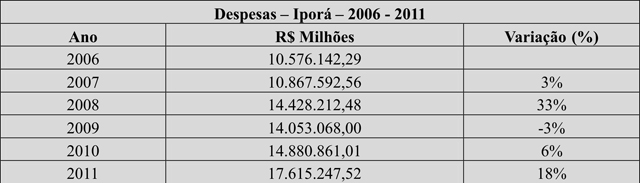 Em relação às despesas para o mesmo período, notamos que os anos de 2008 e 2011 foram mais intensos em gastos ao passo que em 2009 houve uma redução nos gastos do executivo.