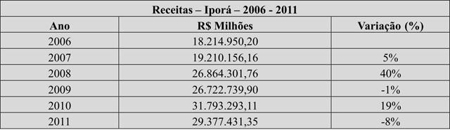 Sendo assim as receitas para o Município de Iporá ficaram estimadas, crescendo em média 8% em função do tempo.